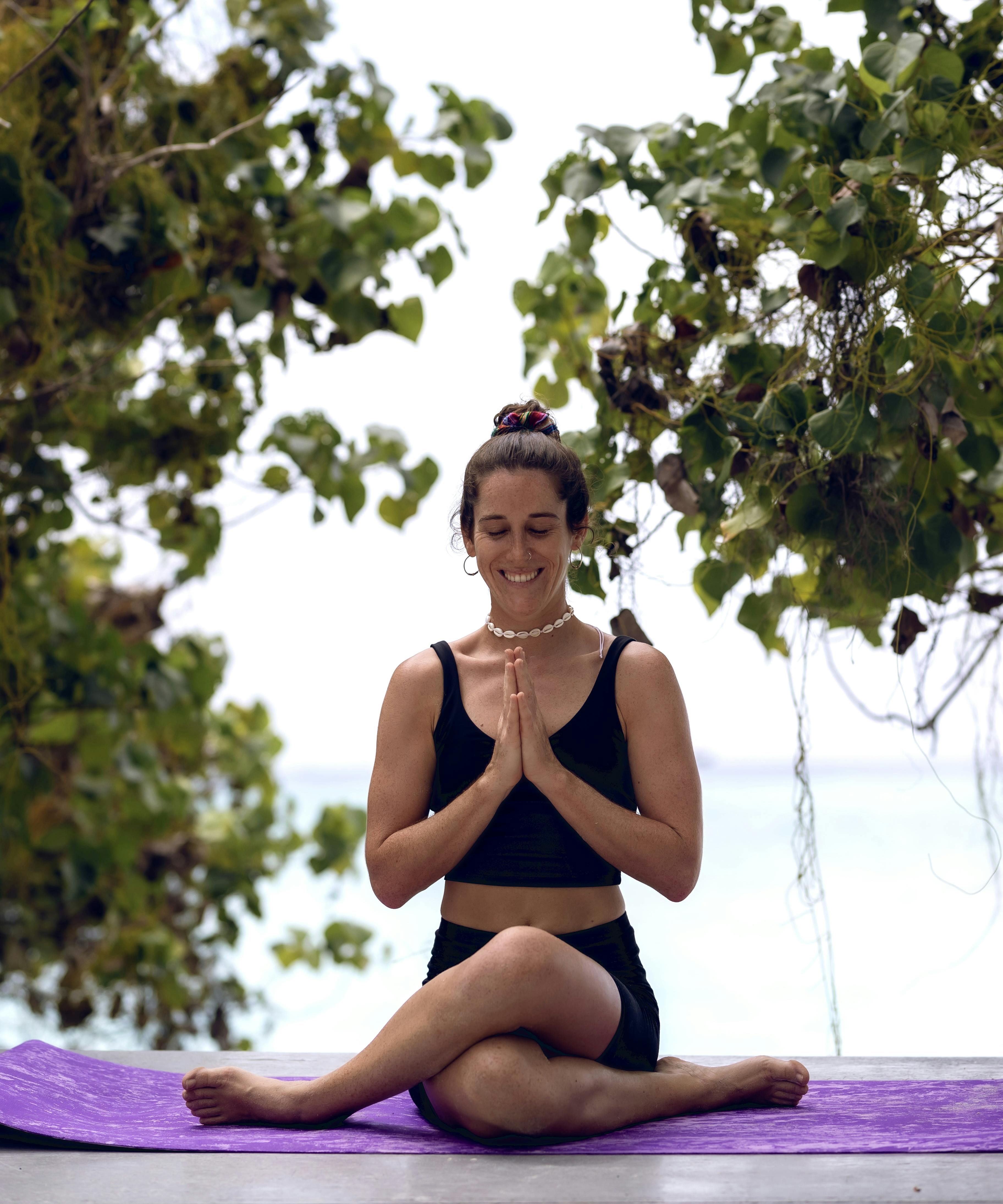 Titulada en hatha, rocket, vinyasa krama y SUP yoga, con más de 6 años de práctica personal y más de 3 de enseñanza, compagina también sus enseñanzas yoguis con el cuidado de los gatos callejeros de Ukulhas.